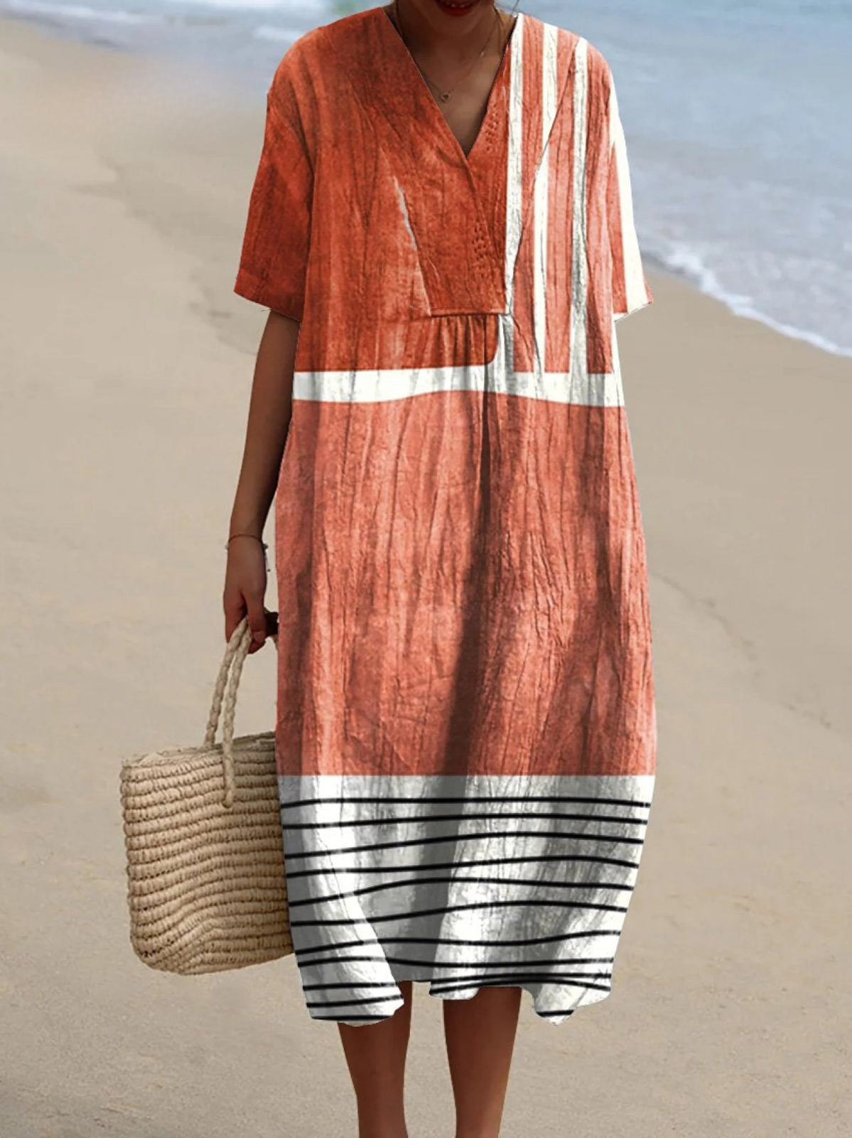 Crafted from airy, breathable fabric, this short sleeve spring dress brings a fresh take on everyday elegance. Designed to keep you comfortable as temperatures rise, it offers a balanced silhouette that feels light yet polished. Easy to style with sandals, flats, or low heels, it carries you effortlessly from daytime errands to evening plans.