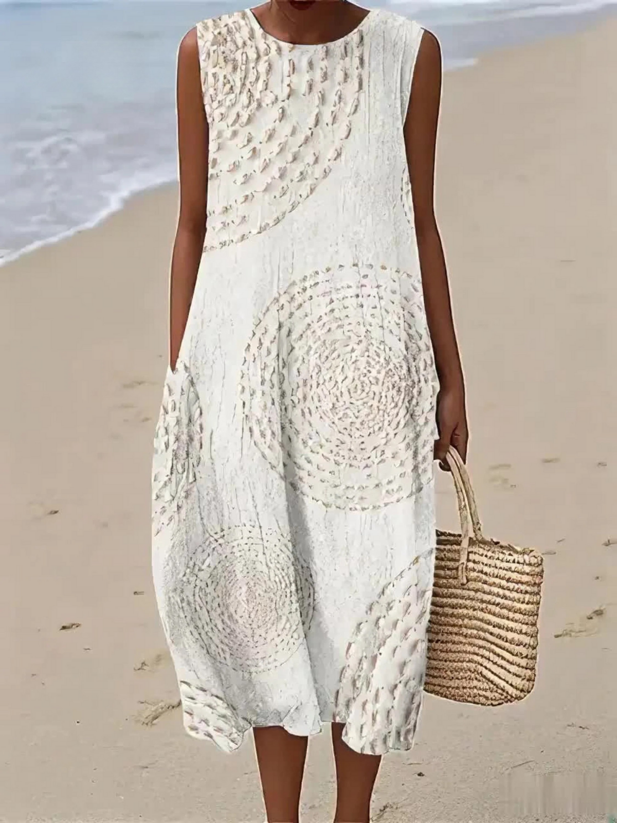 Crafted from airy, breathable fabric, this sleeveless spring dress offers a fresh take on everyday elegance. Designed to keep you comfortable as temperatures rise, it flows effortlessly while maintaining a clean, refined silhouette. Easy to dress up with sandals or keep casual with flats, it transitions seamlessly from daytime to evening wear.