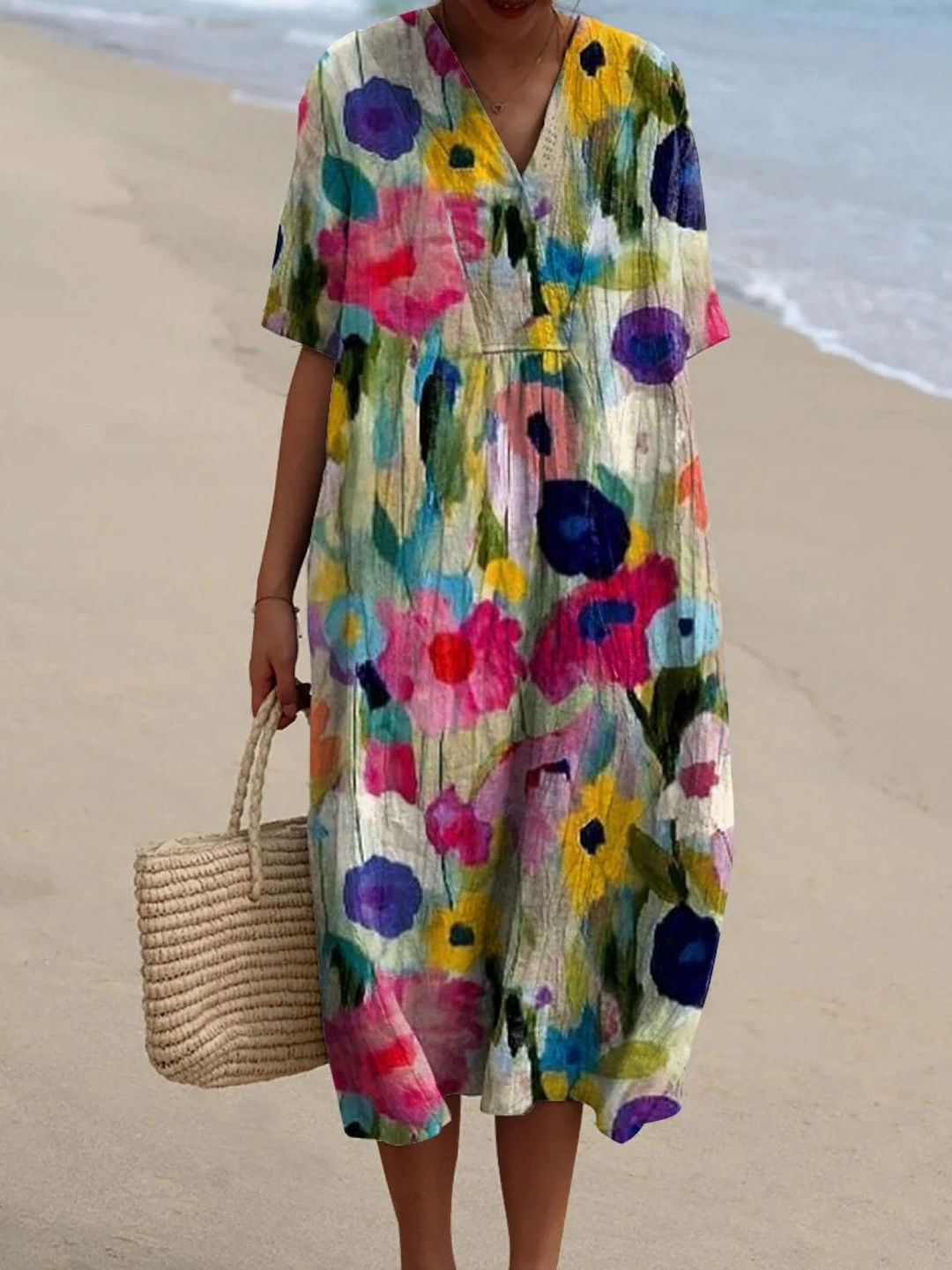 Women's Retro Floral Art Print Casual Flowy Dress