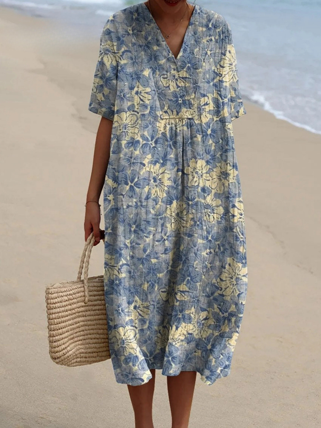 Women's Vintage Lovely Floral Art Print Casual Flowy Dress