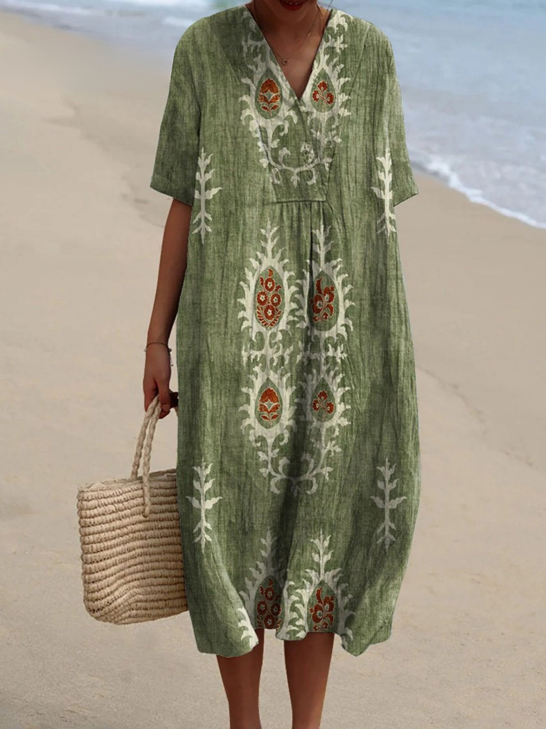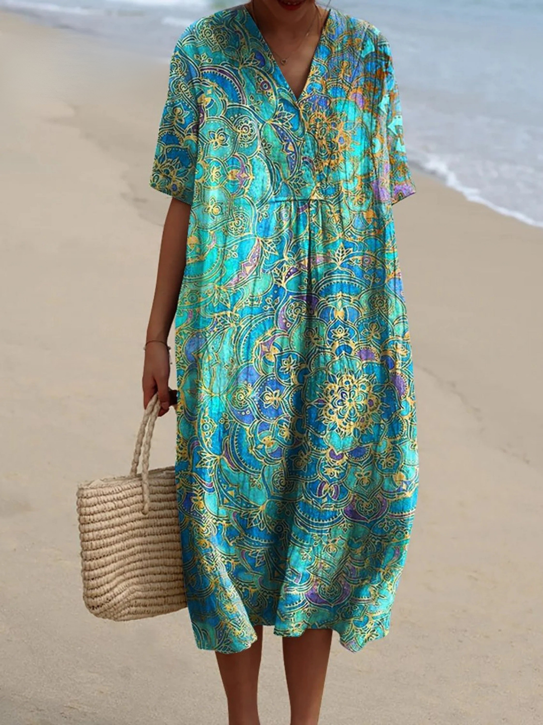 Women's Vintage Floral Ethnic Art Print Casual Flowy Dress