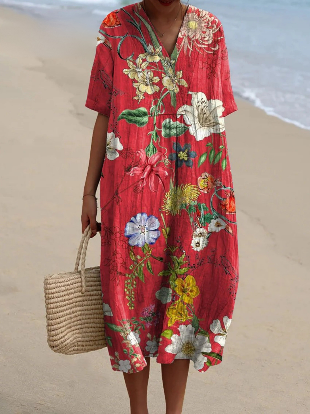 Women's Vintage Floral Art Print Casual Flowy Dress