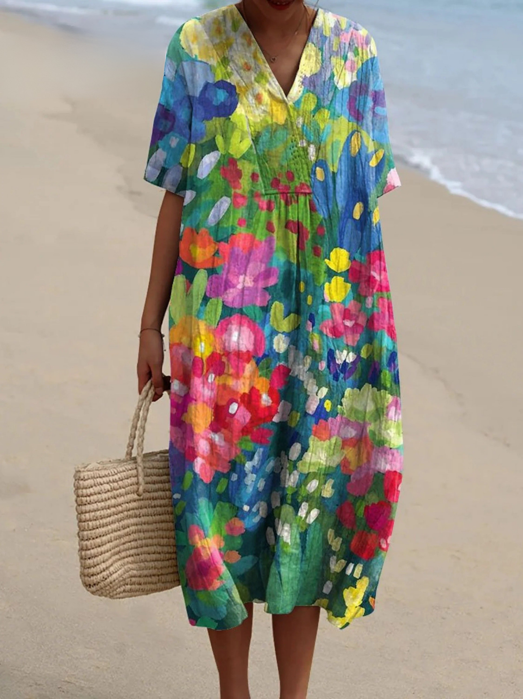 Colorful Spring Floral Garden Printed Women's Flowy Dress