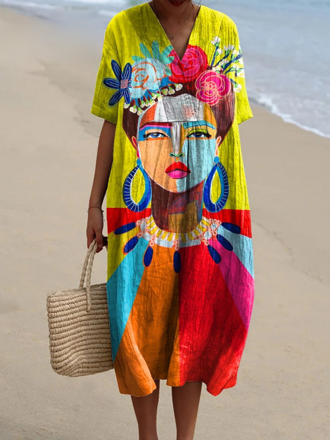 Oil Painting Freda Portrait Art Printed Women's Flowy Dress